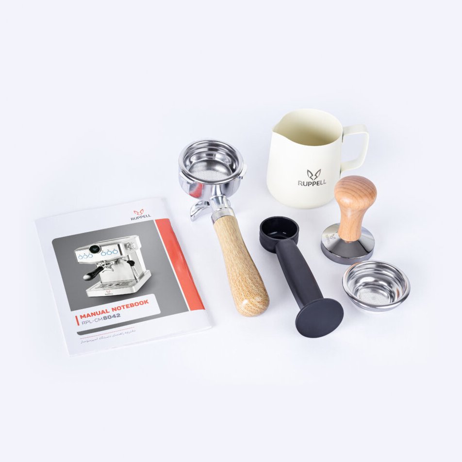 اسپرسوساز روپل RPL-CM8042 دارای مخزن آب 1.8Lit، پمپ فشار 20 بار، سیستم خاموشی خودکار، توان 1350w، بدنه استیل، نمایشگر دیجیتالو قابلیت تنظیم زمان عصاره گیری است.