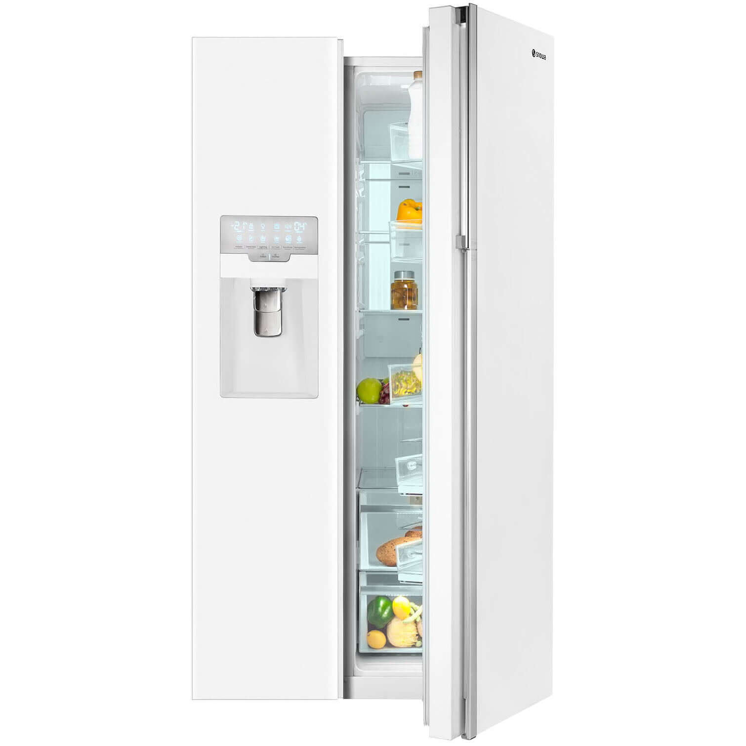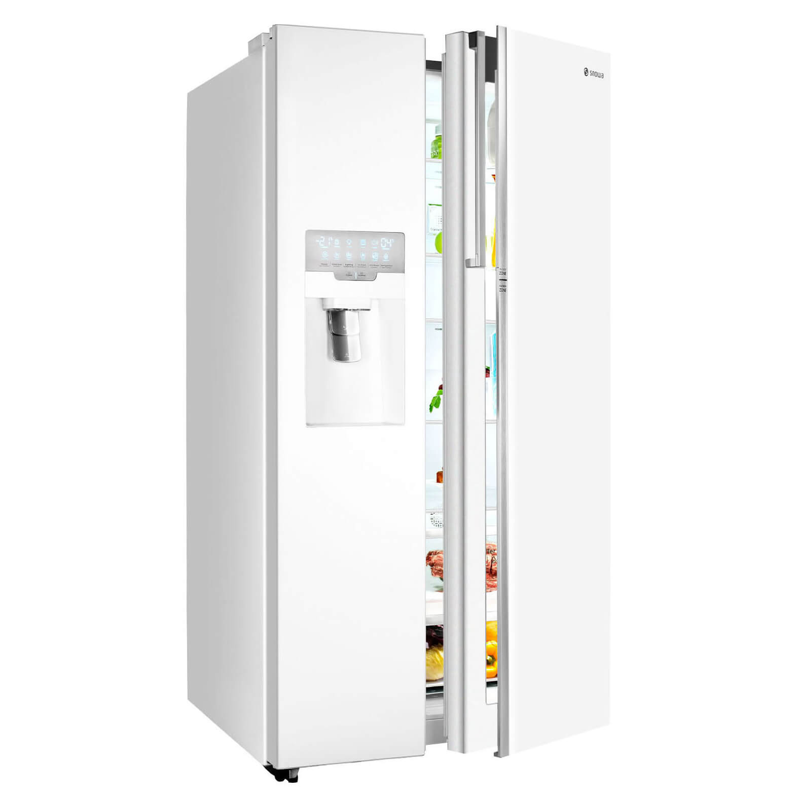 ساید بای ساید اسنوا SN8-3353GW به رنگ سفید متالیک و با طراحی 2 درب، تولید و به بازار عرضه شده است. این محصول مجهز به سیستم آبریز و یخساز اتوماتیک (دو پدال) جهت دسترسی سریع و آسان شما به آب و یخ، می باشد. ساید بای ساید اسنوا SN8-3353GW با گنجایش 719 لیتری (35 فوتی) که برای خانواده های پر جمعیت مناسب می باشد. نمایشگر LED روی بدنه این محصول جهت کنترل عملکرد دستگاه می باشد. به علاوه اینکه در زیباتر شدن یخچال فریزر اسنوا تاثیر داشته است.