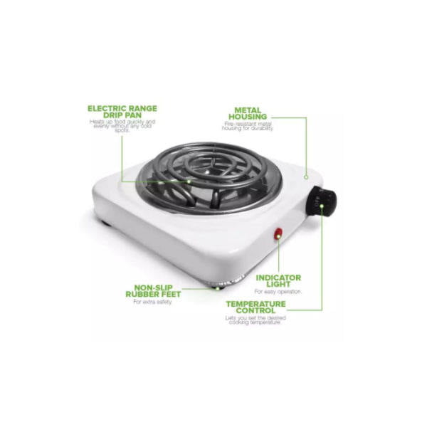 دکمه ی ترموستات برای تظیم میزان حرارت – تک شعله – بدنه ای بسیار مقاوم ومحکم – قطر 15 سانتی متر – قابلیت پخش حرارت بطور یکسان – قابل استفاده برای جوشاندن آب جهت دم کردن چای، پختن غذا، سرخ کردن، یخ زدایی و سرخ کردن مواد غذایی در مسافرت – چراغ نشان گر |