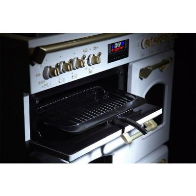 گنجایش فر برقی 33 لیتر- گنجایش فر و گریل گازی 52 لیتر- گنجایش کابین گریل برقی 20 لیتر – مجهز به چرخ های عقب اجاق جهت سهولت در جابجایی – صفحه نمایشگر دیجیتال 6 کلیده – مجهز به کنترل زمانی شعله های فوقانی – مجهز به ترموکوپل – مجهز به شعله زماندار – سیستم هشدار دهنده اتمام زمان پخت – ریل تلسکوپی – قابلیت پخت همزمان در هر سه محفظه فر |
