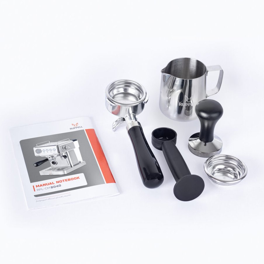 اسپرسوساز روپل RPL-CM8040 S با توان 1350w، فشار 20 بار، مخزن آب 1.5Lit، سیستم خاموشی خودکار، نمایشگر دیجیتال، فیلتر آب و بدنه استیل برای خانه و محل کار مناسب است.