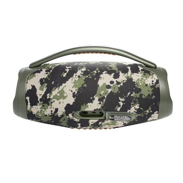 اسپیکر جی بی ال Boombox 3 چریکی از سیستم های صوتی قابل حمل برند جی بی ال JBL است که با ابعاد 20×48×26 سانتی متر، وزن حدود 6 تا 7 کیلوگرم یک گزینه فوق العاده برای دورهمی، مهمانی، جشن، استخر و … به شمار آمده و یکی از پرطرفدارترین اسپیکرهای بازار می باشد. این مدل در دو رنگ مشکی و چریکی (ارتشی) موجود بوده و از به روزترین تکنولوژی های دنیا بهره برده است. به لحاظ اقتصادی نیز قیمت اسپیکر جی بی ال Boombox 3 چریکی با توجه به کیفیت بلای آن نسبتا مناسب می باشد و دستگاه با کیفیت صدای عالی و پخش قدرتمند به عنوان یکی از انتخاب های عالی در میان سایر رقبا محسوب می شود.