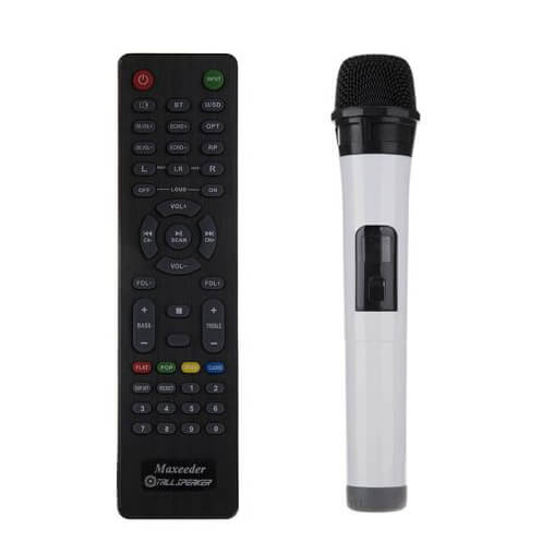 رنگ مشکی و طراحی دو تکه ی اسپیکر مکسیدر مدل IR50 جلوه خاصی به دکوراسیون منزل شما می بخشد و شما را قادر می سازد تا بتوانید از آن در دو نقطه مختلف از سالن خود استفاده نمایید. همچنین از کیفیت صدای بسیار رسا با وضوح بالا بهره مند است و به همراه یک میکروفون بی سیم ارائه می شود.