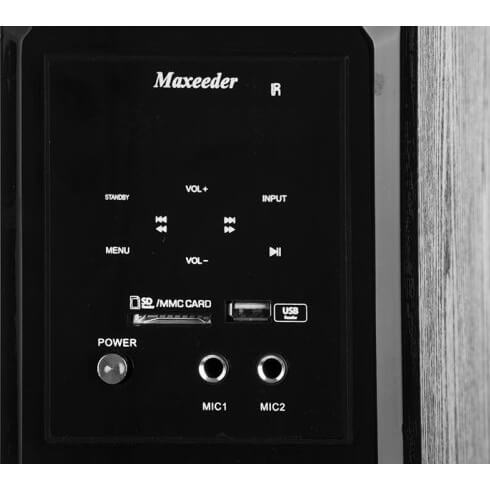 رنگ مشکی و طراحی بی نظیر دو تکه ی اسپیکر مکسیدر IR51 جلوه خاصی به دکوراسیون منزل شما می بخشد و به شما این امکان را می دهد تا از آن در دو نقطه مختلف از سالن خود استفاده نمایید. همچنین از کیفیت صدای بسیار رسا با وضوح بالا بهره مند است و به همراه یک میکروفون بی سیم ارائه می شود.
