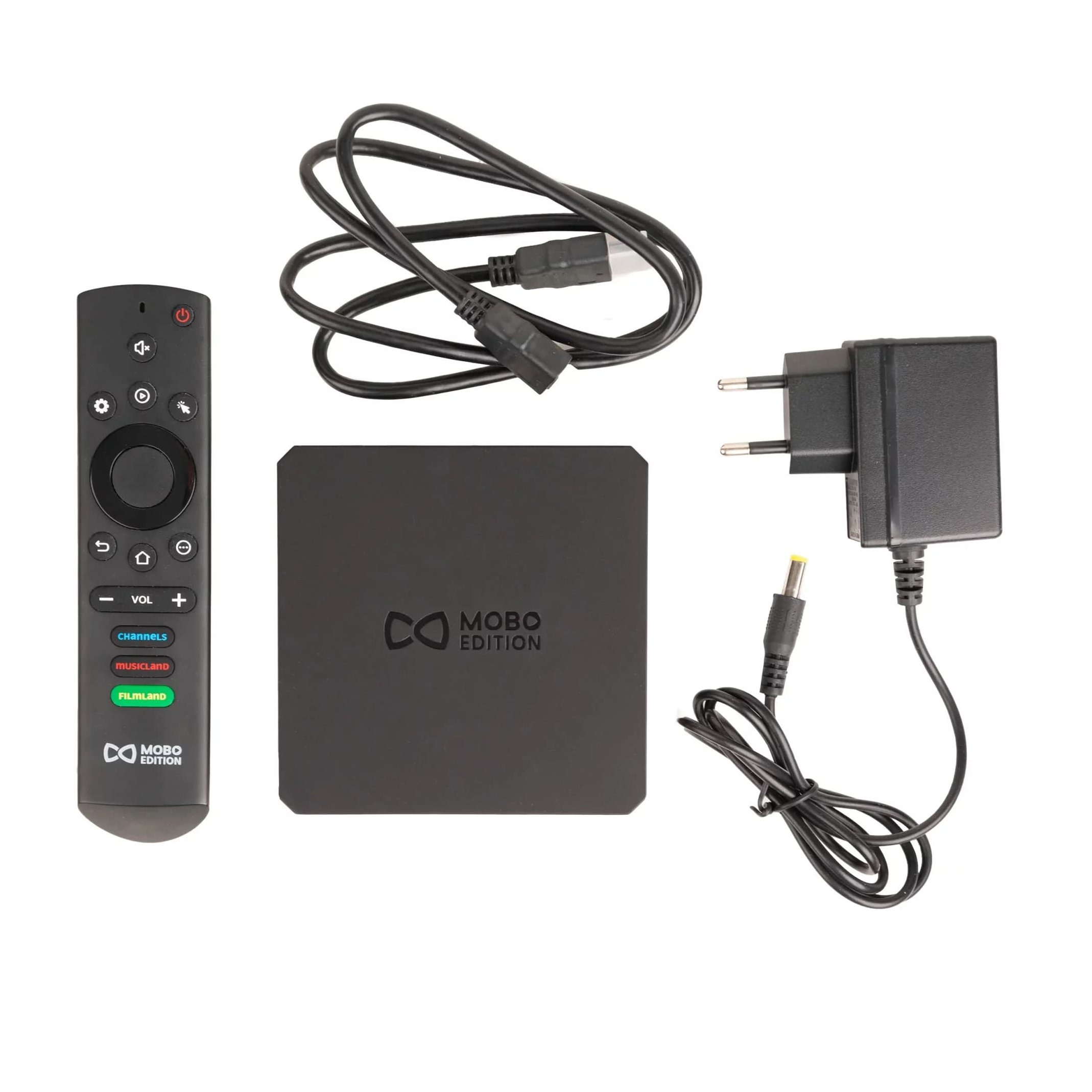 اندروید باکس نت باکس موبو ادیشن Mobo Edition یکی از جدیدترین محصولات عرضه شده توسط شرکت نت باکس Netbox است و دستگاهی برای تبدیل تلویزیون معمولی به تلویزیون هوشمند به شمار می رود. این مدل با مجهز بودن به قوی ترین سخت افزار، در مقایسه با سایر مدل های بازار از عملکردی سریع و امکاناتی کامل برخوردار می باشد و با استفاده از درگاه های مختلفی که دارد، اتصال وسایل جانبی متنوع را برای کاربر فراهم می کند. قیمت اندروید باکس نت باکس موبو ادیشن نیز بسیار مقرون به صرفه است و کاربر می تواند با خرید این مدل تجربه ای جدید از سفر در دنیای سرگرمی های دیجیتال را داشته باشد.اندروید باکس نت باکس مدل Mobo Edition