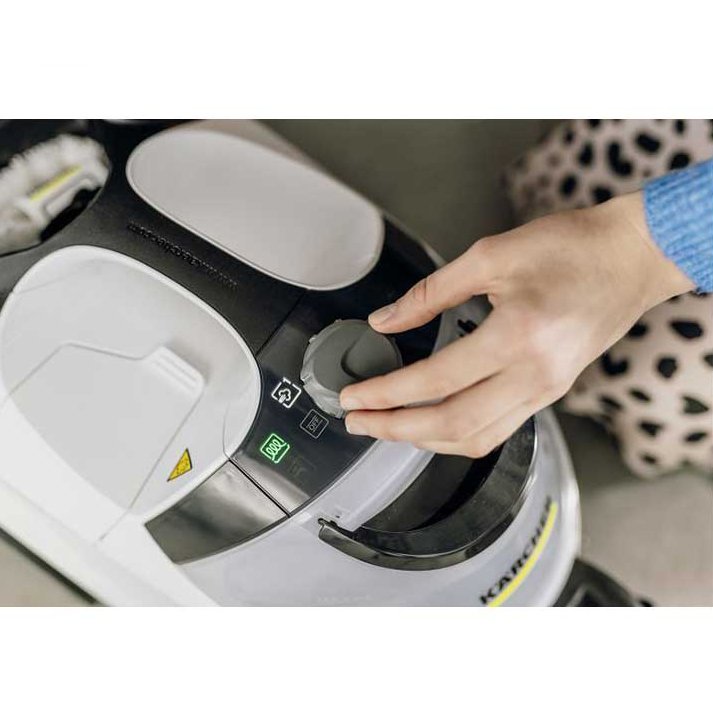 بخارشوی کارچر مدل SC 5 EasyFix سفید برای نظافت سطح به هیچ مواد شوینده ای نیاز ندارد و با مخزن 1.5 لیتری قابل جدا شدن به راحتی یک سالن بزرگ 150 متری را شستشو و ضد عفونی خواهد کرد. فشار بخار این بخارشوی برابر 4.2 بار است که با عملکرد VapoHydro تمام لکه های سخت را تنها با استفاده از آب داغ پاک می کند و کاربر می تواند با توجه به میزان آلودگی و جنس سطح، خروجی بخار را توسط دکمه روی دسته در 2 مرحله زیاد یا کم تنظیم نماید.