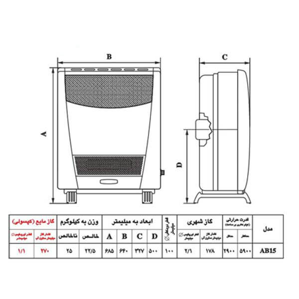دارای جرقه زن – قابلیت نصب بر روی زمین – شیشه سکوریت رفلکس – کم مصرف – مجهز به سیستم ODS – قطع خودکار گاز در صورت کاهش 18 درصدی اکسیژن |