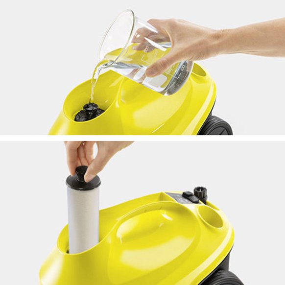 بخارشوی کارچر مدل SC 3 EasyFix زرد با ابعاد 25×24×36 سانتی متر بسیار جمع و جور است و به چرخ های پلاستیکی روان مجهز می باشد تا کاربر بتواند هنگام شستشوی سالن، آن را به راحتی حمل و جابجا نماید. از طرفی تمام لوله ها و نازل های آن جهت اشغال کمتر فضای منزل، روی بدنه دستگاه در محل مخصوص خود جای می گیرند. مخزن آب این مدل 1 لیتر گنجایش دارد که به راحتی برای یک سالن 75 متر مربع مناسب بوده و با استفاده از فشار بخار آب می تواند انواع لکه و چربی را روی از سطوح مختلف تمیز کند.
