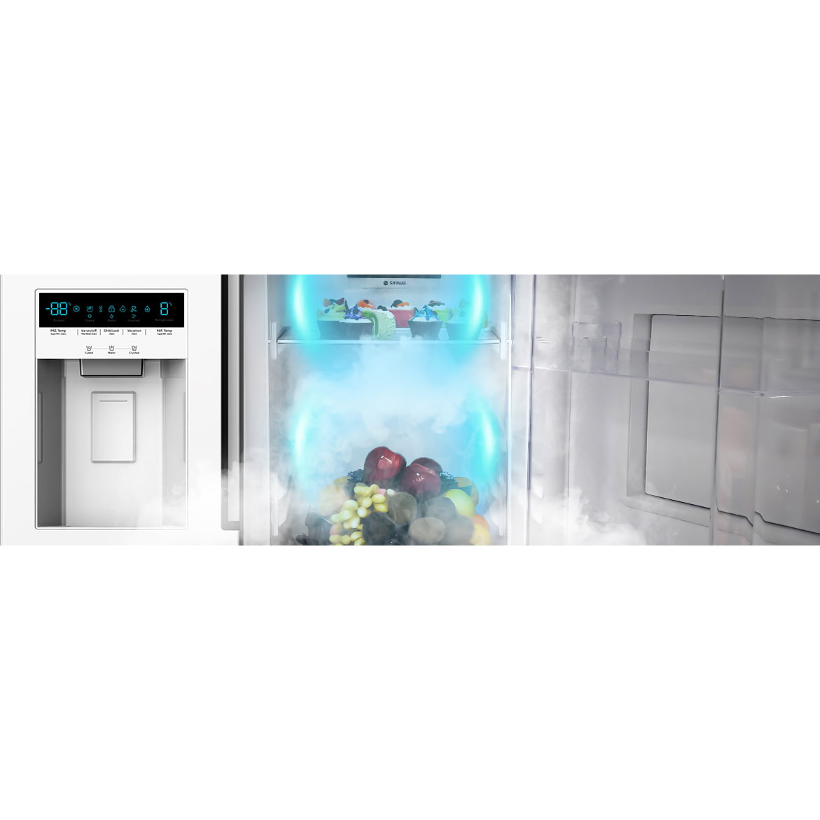 اگر سرما به طور یکسان در طبقات یخچال جریان نداشته باشد، مواد غذایی به سرعت فاسد شده و کیفیت خود را از دست می دهند. وجود سیستم گردش هوای سه بعدی و دریچه های متعدد هوا در ساید بای ساید اسنوا SN8-2261SS هوای خنک را به صورت یکنواخت در تمامی طبقات یخچال پخش می کند و موجب سالم تر ماندن آن ها می شود.