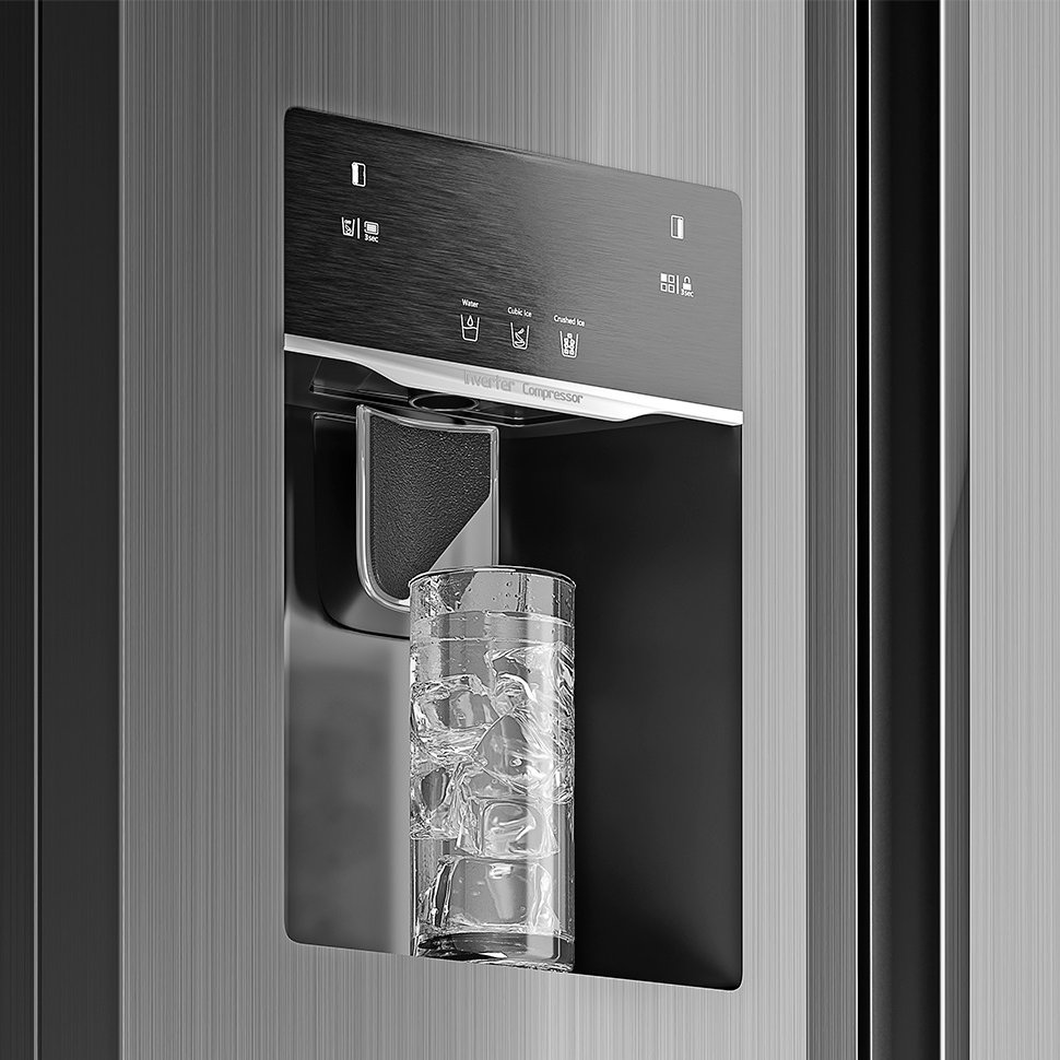 از محفظه Fresh Zone می توانید برای تازه ماندن مواد غذایی مانند میوه و سبزیجات استفاده نمایید. نمایشگر LED تعبیه شده بر روی بدنه ساید بای ساید 7635 تیتانیوم جی پلاس علاوه بر زیباتر نمودن ظاهر محصول، به شما این امکان را می دهد تا وضعیت کلی دستگاه را از این طریق کنترل نمایید. یخساز اتوماتیک سه حالته برای دسترسی آسان و سریع به یخ آماده و بهداشتی، طراحی شده است.
