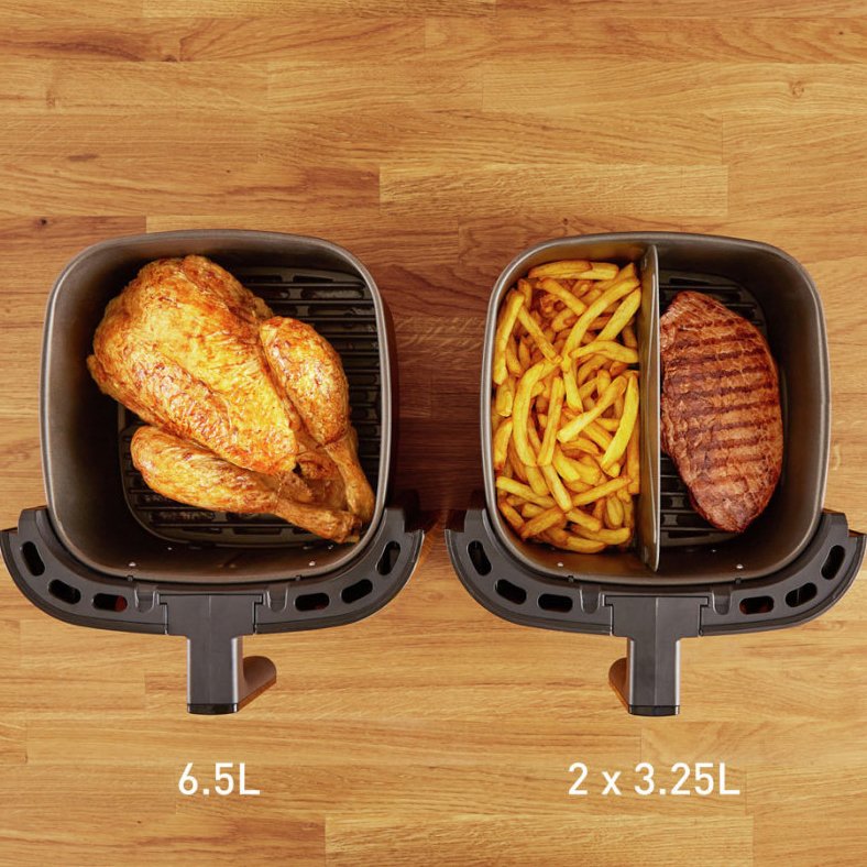 سرخ کن تفال مدل EY 801 به تکنولوژی Extra Crisp مجهز است و به شما امکان پخت یکنواخت غذا با کاهش ۹۹ درصدی روغن را می دهد. این سرخ کن با ظرفیت 6.5 لیتر (8 نفره) انتخابی ایده آل برای جمع های خانوادگی و دورهمی ها به شمار می آید و امکان پخت انواع سبزیجات، سیب زمینی سرخ شده، ناگت، مرغ سوخاری، پیتزا، گوشت، ماهی و دسر را برای شما فراهم می کند.