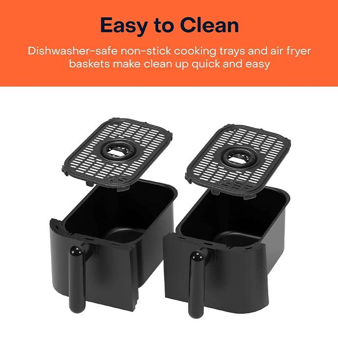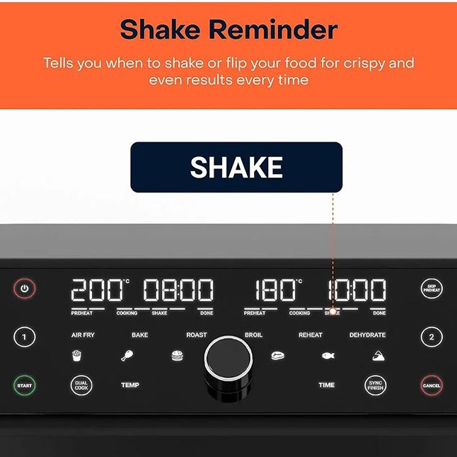 بدنه پلاستیکی – دارای 6 برنامه خودکار: سیب زمینی سرخ شده، مرغ، برگر، استیک، ماهی، سمبوسه – قابلیت تنظیم دما – سبد کشویی – کاسه مستطیلی با روکش نچسب – کلید روشن / خاموش – بدنه عایق سرد و دستگیره خنک – پایه لاستیکی ضد لغزش – قابلیت شستشوی قطعات در ماشین ظرفشویی – عاری از BPA در بخش های پلاستیکی در تماس با مواد غذایی – نشانگر روشن بودن دستگاه – پخت همزمان هر دو سبد با استفاده از برنامه Sync Cook – دارای هشدار Shake برای تکان دادن مواد غذایی در حین پخت |