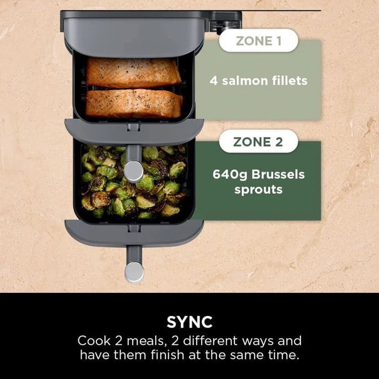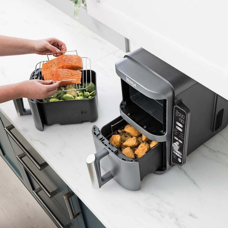 سرخ کن دوقلو نینجا مدل SL400 خاکستری با توان 2470 وات از سرخ کن های قدرتمند بازار به شمار می آید و عملکرد پخت را 75 درصد سریع تر از فن های فردار انجام خواهد داد. این مدل دارای دو سبد کشویی از جنس روکش نچسب و ضدخش بوده و نمایشگر لمسی در کنار دستگاه زیبایی آن را چند برابر کرده است. همچنین دارای یک توری فلزی می باشد تا کاربر آن را به عنوان استند درون مخزن قرار دهد و بتواند دو مواد غذایی را با شرایط پخت یکسان آماده کند.