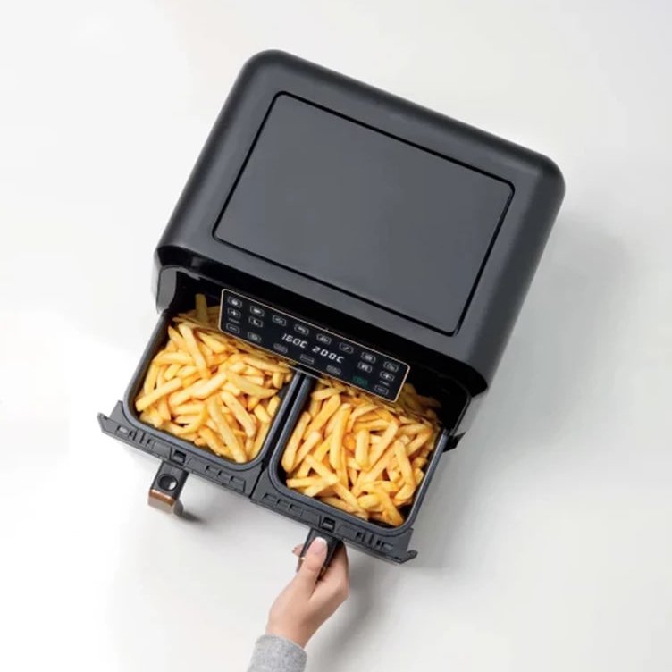 پخت به وسیله گردش هوای گرم – دارای 2 سبد مجزا – قابلیت کانوکشن – قابلیت تنظیم دما تا 200 درجه سانتیگراد – کاسه مربع – کلید روشن / خاموش – درب فلزی – بدنه عایق سرد – پایه ضد لغزش – محفظه برای جمع کردن سیم برق – بدنه ای از جنس پلاستیک بادوام – قابلیت Shake reminder – سبد جدا شونده با پوشش نچسب همراه با دسته |