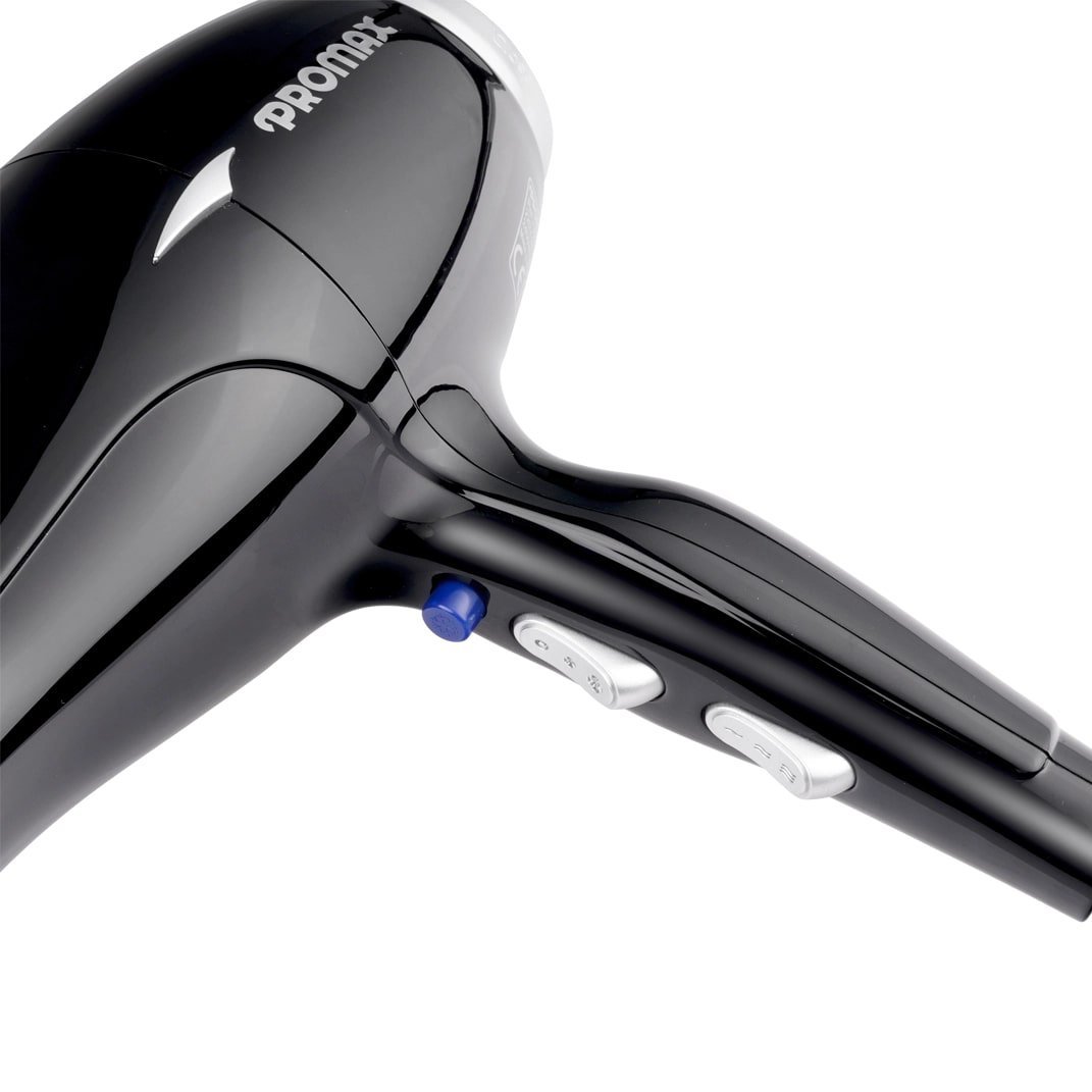 سشوار پرومکس 7280 با توان 2000 وات، موتور AC،کابل برق 3 متری، فناوری تولید یون، المنت سرامیکی، 2 متمرکز کننده، حلقه آویز، 3 حالت حرارت و 2 سطح سرعت باد می باشد.