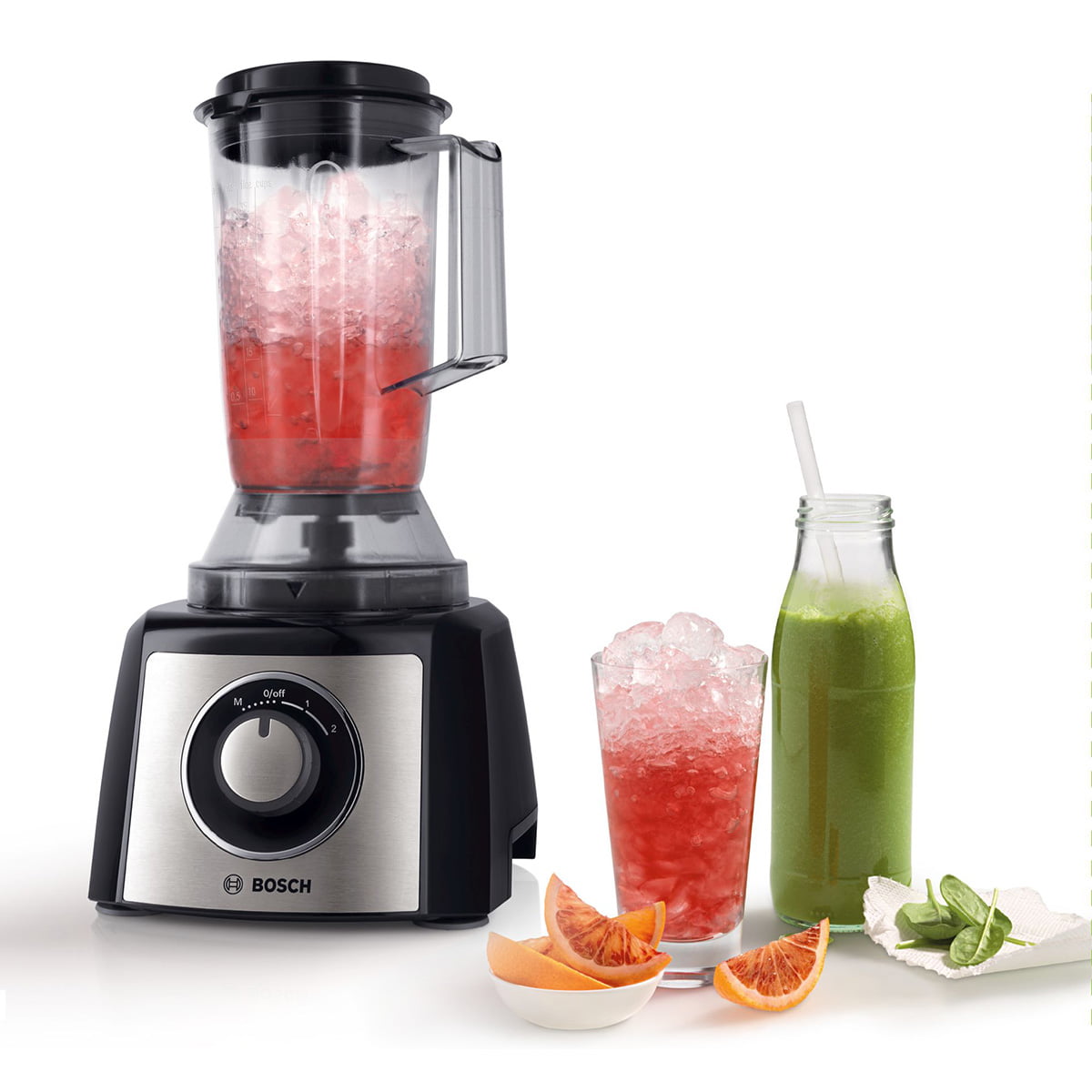 غذاساز بوش MCM3501M دارای پارچ مخلوط کن با ظرفیت 1 لیتر میباشد تا بتوان مخلوط های مایع و آبمیوه و نوشیدنی های مورد علاقه تان را تهیه فرمایید .