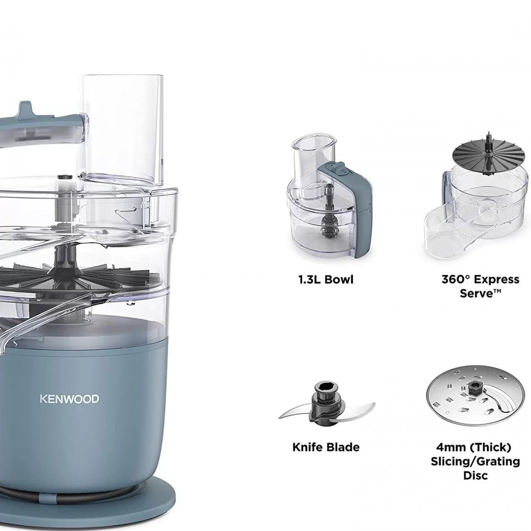 غذاساز و سالاد ساز کنوود FDP22 دارای ظرفیت 1.3Lit، توان 650w، تیغه استیل دوپره، دیسک 4 میلیمتری برش و رنده، چرخش 360 درجه در خروجی و عملکرد لحظه ای می باشد.