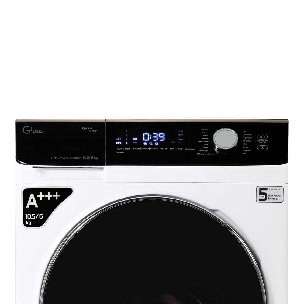 لباسشویی جی پلاس GWM-KD1059W نوع درب از جلو، به رنگ سفید و ظرفیت 10.5 کیلویی مناسب خانواده های پر جمعیت طراحی و در دسترس خریداران عزیز قرار گرفته است.