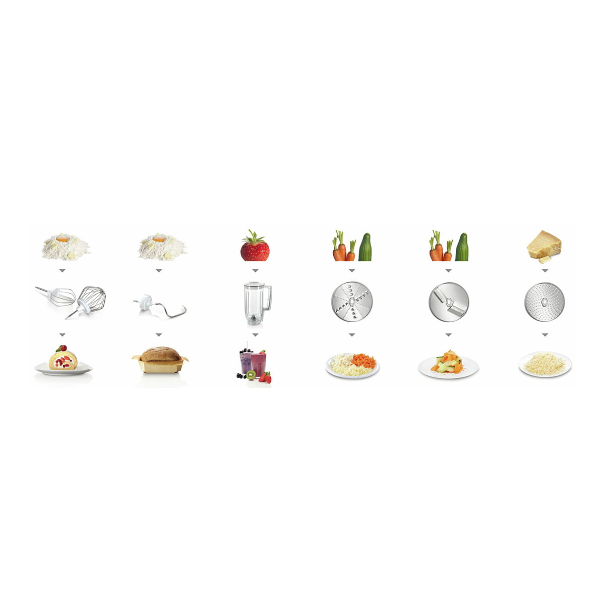 سیستم مخلوط‌ کن سه‌ بعدی و چرخشی – کنترل الکتریکی تنظیم سرعت یکنواخت – کاسه بزرگ برای حداكثر 2.7 كیلوگرم مخلوط کیک یا 1.9 کیلوگرم خمیر – خردكن يكپارچه همراه با 3 دیسک استیل ضد زنگ (دیسک های دوطرفه برش، خرد كن و رنده ریز و درشت) – قابلیت شستشوی لوازم جانبی در ماشین لباسشویی – استفاده، تمیز کردن و نگهداری آسان – حرکت آسان تنها با فشار یک کلید – پایه های پلاستیکی چسبنده برای ثبات بیشتر دستگاه – ایمنی بالاتر با سیستم محافظت در برابر گرم شدن بیش از حد – سیستم جلوگیری از فعال شدن ناخواسته موتور