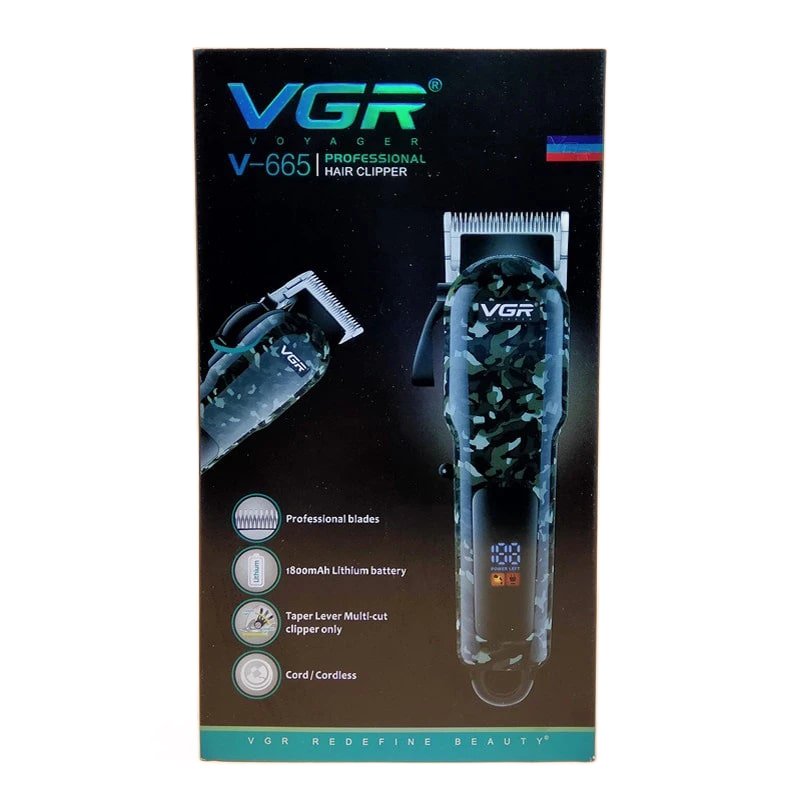 ماشین اصلاح وی جی آر V-665 دارای 4 شانه اصلاح، نمایشگر LED، باتری لیتیوم یون 2000mah، موتور 7000rpm و تیغه استیل، قابلیت استفاده به صورت بی سیم و باسیم را دارد.