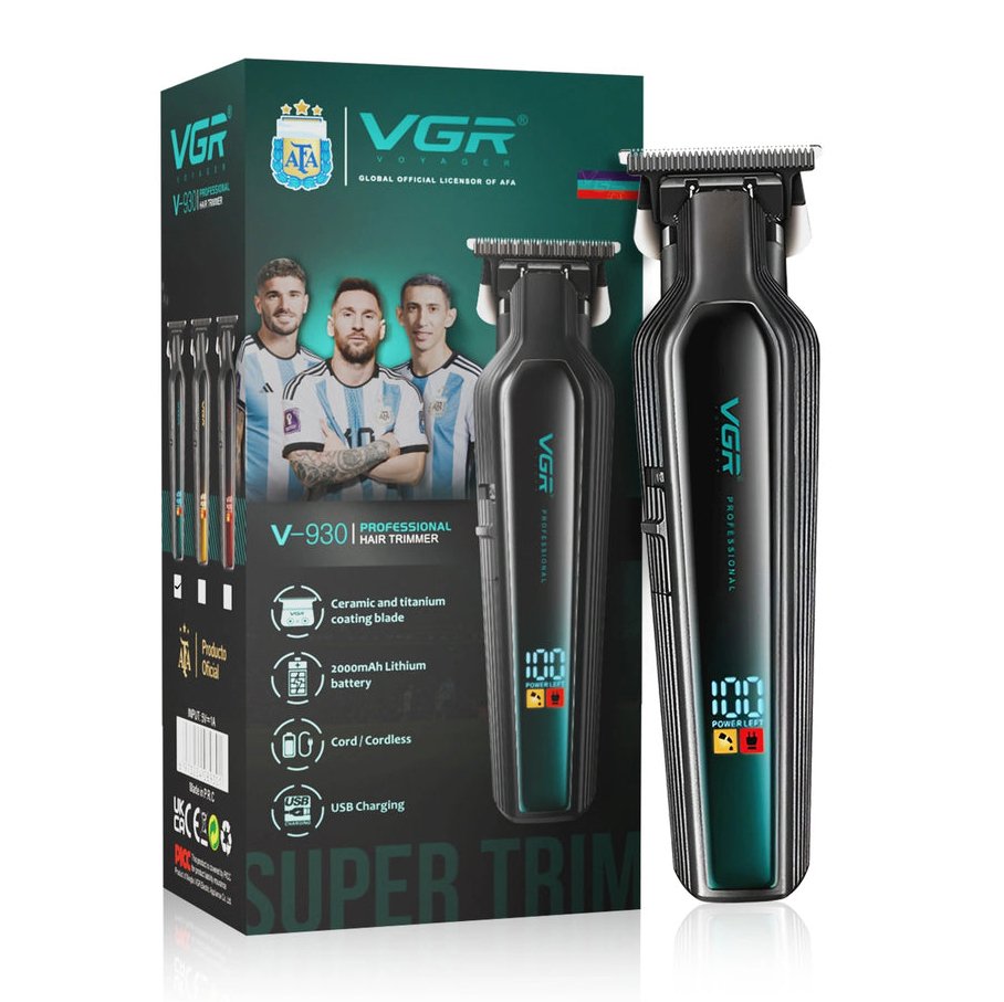 ماشین اصلاح وی جی آر VGR V-930 مجهز به باتری لیتیوم یون 2000 میلی آمپر، چهار شانه اصلاح، نمایشگر LED، عملکرد برش مستقیم و تیغه تیتانیوم با روکش سرامیک می باشد.