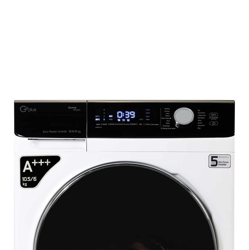 ماشین لباسشویی جی پلاس GWM-MD1059W با ظرفیت 10.5 کیلو، موتور BLDC، برنامه ضدعفونی کامل لباس، خشک کن 6 کیلویی، 16 برنامه اصلی و 9 کمکی محصول شرکت گلدیران میباشد.
