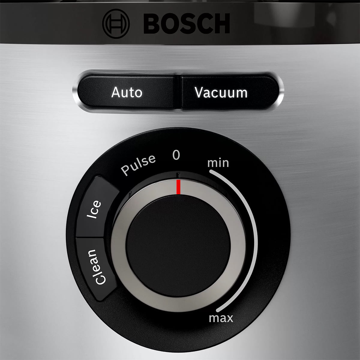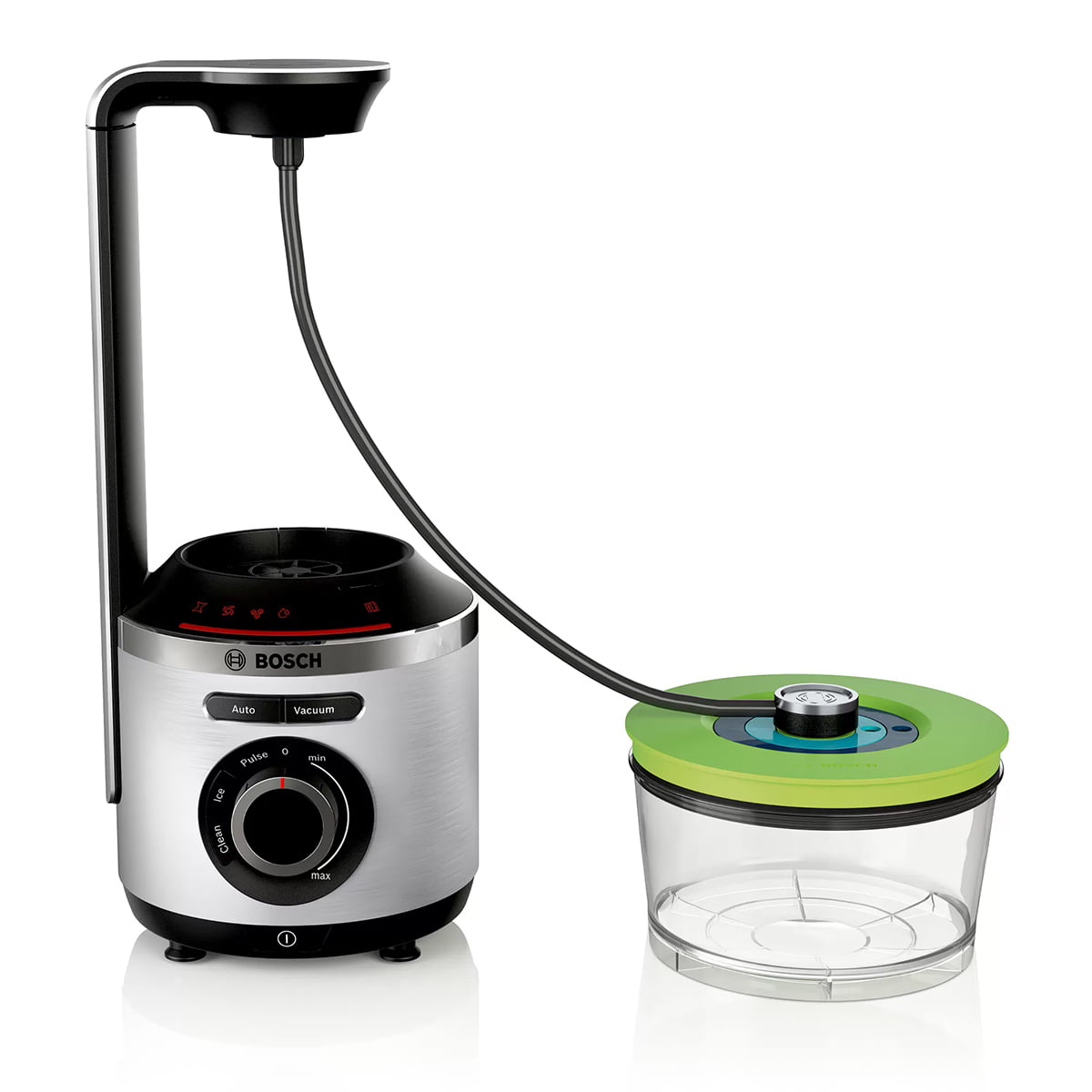 مخلوط کن بوش MMBV625M ، یکی از مخلوط کن های حرفه ای و بادام ساخت و عرضه شده بوش میباشد و از سری VitaMixx این برند است. موتور قدرتمند 1000 وات با دور موتور 37000 دور در دقیقه و تیغه 6 پره استیل، نتایج کار فوق العاده ای را در اختیارتان قرار میدهد . مخلوط کن بوش MMBV625M با اعمال تخلیه هوا از محفظه پارچ با استفاده از درپوش موسوم به Vacuum، از اکسیداسیون و در نتیجه از دست رفتن طعم و خواص مواد مغذی جلوگیری میکند. این امر نگهداری مواد غذایی در داخل دیگر ظرف دستگاه را نیز تا میزان 2 برابر به نسبت دیگر مخلوط کنها افزایش میدهد پارچ تریتان مخلوط کن بوش MMBV625M ، دارای حجمی برابر 1.5 لیتر است که بهترین نتیجه را از نظر امنیت و سلامت مواد غذایی تهیه شده در آن را ارائه میدهد . تریتان حاوی BPA ، BPS یا سایر فنول ها نیست. این سبک، بادوام است و حتی بعد از استفاده مکرر و شستشوی ظرف تغییری در شکل ظاهری آن ایجاد نشده و مانند شیشه به نظر می رسد. تغییر دستی سرعت دستگاه امکان پذیر بوده و بسته به نوع عملکرد و میزان دلخواه شما توسط کنترلر چرخشی قابل تنظیم میباشد. تعبیه یک تیغه 6 پره از جنس استیل ضد زنگ عملیات ترکیب کردن انواع مواد غذایی را به بهترین شکل ممکن انجام میدهد. تعبیه 4 برنامه اتوماتیک بر روی پنل دستگاه با رابط کاربری آسان علاوه بر ویژگی وکیوم، امکاناتی همچون خرد کردن یخ و برنامه مربوط به نظافت را نیز در اختیار شما قرار میدهد. پس از هر بار انجام فرایند با فشردن دکمه Clean تا حدودی قادر به نظافت پارچ مخلوط کن خواهید بود. با این حال امکان شستشوی قطعات مخلوط کن در ماشین ظرفشویی را نیز خواهید داشت. ظروف دستگاه شامل یک پارچ 1.5 لیتری از جنس تریتان، یک عدد بطری برای نگهداری نوشیدنی های تهیه شده به ظرفیت 500 میلیلیتر و ظرف نگهداری مواد غذایی به ظرفیت 0.75 میباشد که هر دو ظرف با دارا بودن قابلیت وکیوم و همچنین عاری بودن از ماده مضر شیمیایی BPA کیفیت و سلامت نوشیدنی و یا مواد غذایی را تضمین میکنند.