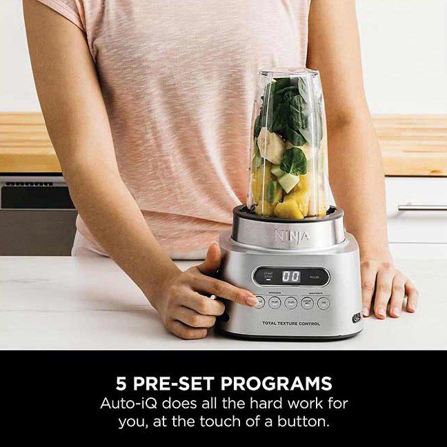 با وجود فناوری Auto-IQ و پنج برنامه هوشمند در مخلوط کن نینجا مدل 150 تنها با لمس یک دکمه نتایج مورد نظرتان را به شما ارائه داده و در عرض چند دقیقه یک میان وعده سالم با طعم فوق العاده را برای شما فراهم می کند. همچنین با نمایشگر LED با کنترل دکمه ای روی بدنه آن علاوه بر افزایش زیبایی محصول، به شما امکان مشاهده و انتخاب برنامه و عملکرد مد نظرتان را می دهد.