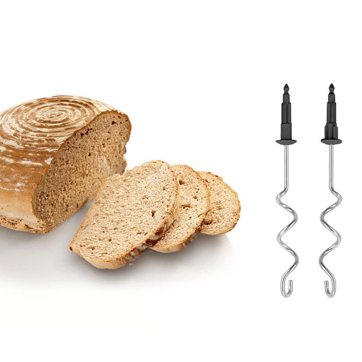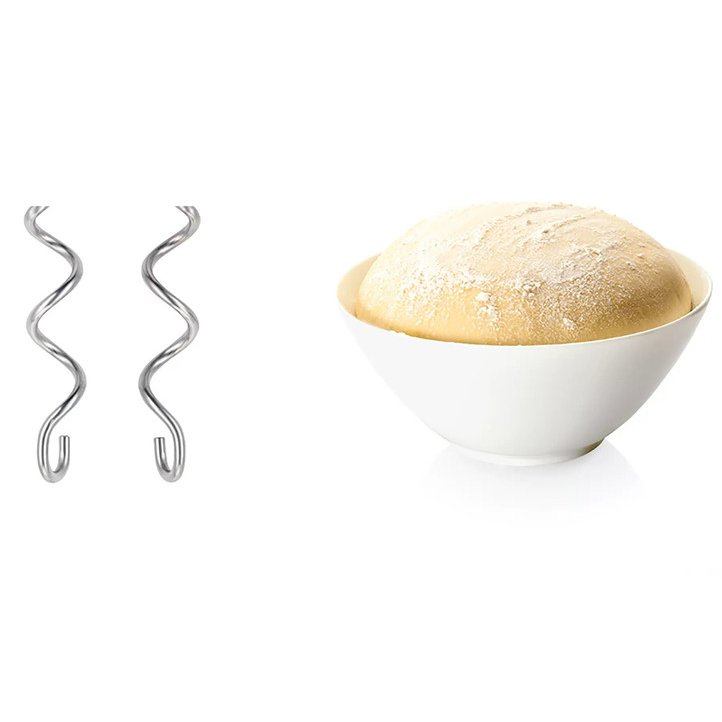 2 عدد میله همزن استیل توربو برای همزدن سریع – 2 قلاب خمیر زنی مناسب برای مصارف سنگین |