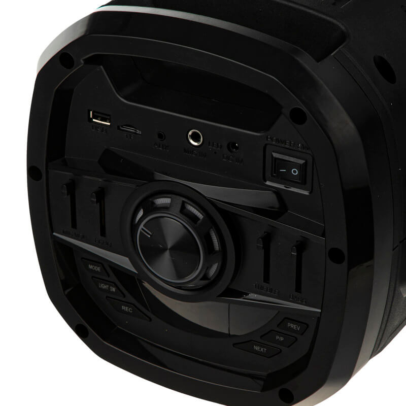 حمل و نقل آسان – همراه با میکرفون بیرونی – صدایی قدرتمند و رسا – مناسب برگزاری جشن ها و مهمانی های خانگی – یک پورت TF/microSD
