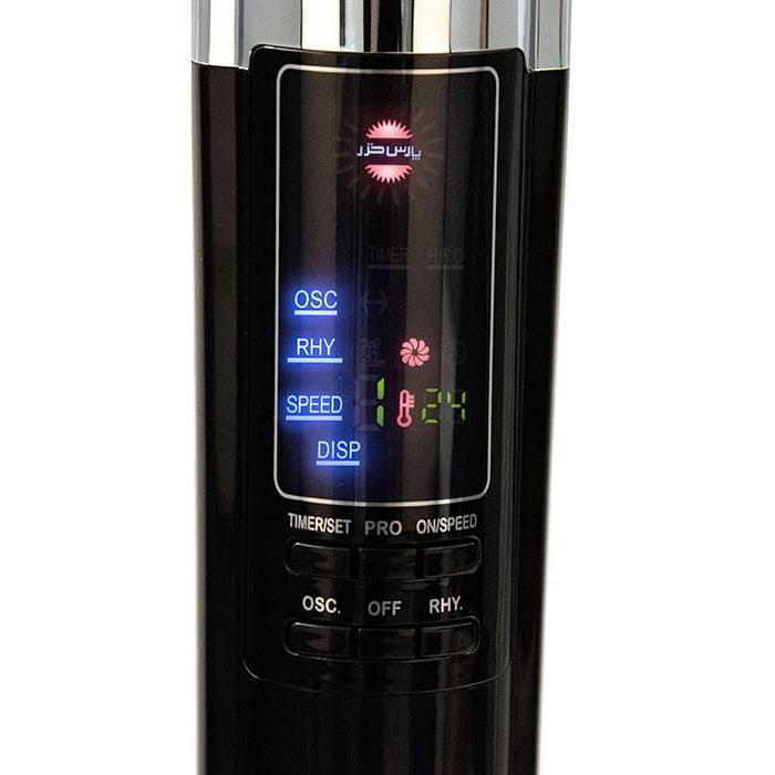 پنکه پایه بلند شیبا پارس خزر FSR-SHIBA دارای پدال جهت روشن و خاموش کردن دستگاه یا تغییر سرعت آن می باشد. وجود صفحه نمایشگر در این پنکه، علاوه بر زیبایی خاصی که به آن بخشیده قابلیت مشاهده تنظیمات دستگاه را نیز فراهم نموده است.
