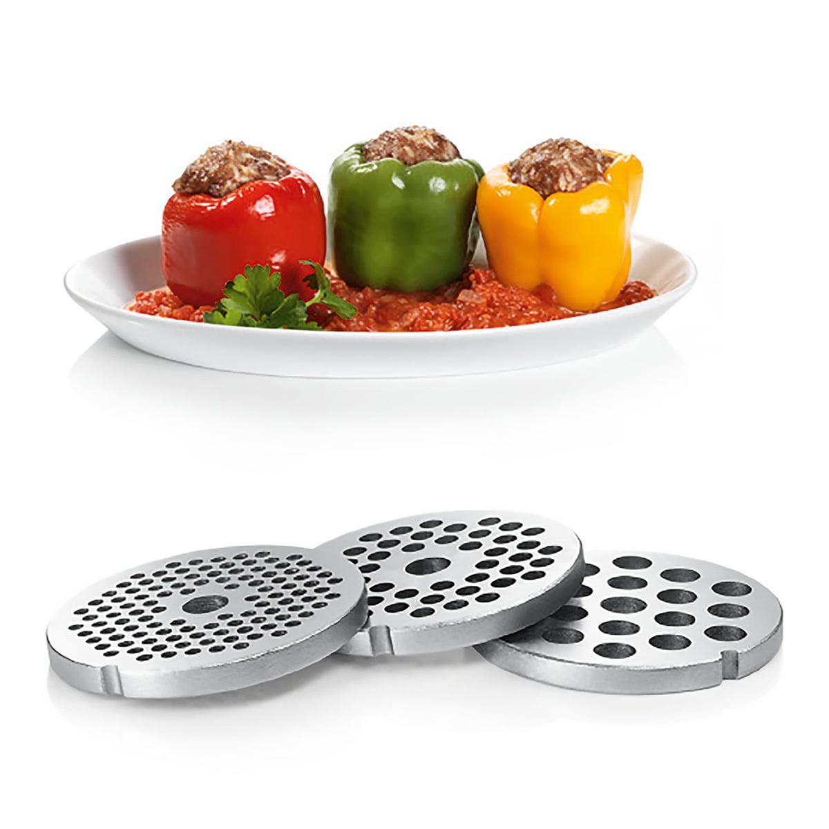 کارکرد چند کاره – نازل های فرم دهنده – سینی بزرگ برای نگهدارنده مواد – اهرم دستی برای هدایت مواد – محفظه مخصوص لوازم جانبی – قابلیت شستشوی قطعات در ماشین ظرفشویی – لوله ناودانی (گلویی) استیل – کلید روشن / خاموش – محافظت در برابر اضافه بار – پایه لاستیکی برای ثبات بیشتر دستگاه – محفظه برای جمع كردن سیم برق – نشانگر روشن بودن دستگاه – رنده درشت، برش ورقه ای متوسط |