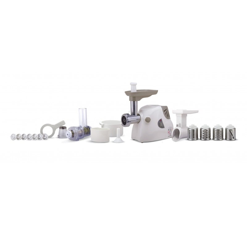 مجهز به کلید برگردان (Reverse) برای برگرداندن مواد غذایی باقیمانده در دستگاه – دارای محفظه نگهداری سیم و شبکه – دارای فیلتر جدا کننده آبمیوه، خرد کن و مخلوط کن – قابلیت آب گیری میوه های مختلف – قابلیت خرد کردن پیاز و سیب زمینی خام به صورت مجزا یا مخلوط – قابلیت خرد و مخلوط نمودن فرم های مختلف ماکارونی و رشته – دارای تیغه برشی (ریز و درشت) و ورقه ای جهت برش چیپسی مناسب برای رنده کردن سیب زمینی، هویج و … و سایر میوه های سفت – دارای تیغه برشی خردکن ریز – مناسب برای پوره کردن سیب زمینی پخته، تخم مرغ پخته، شلغم، گوجه فرنگی و هویج پخته |