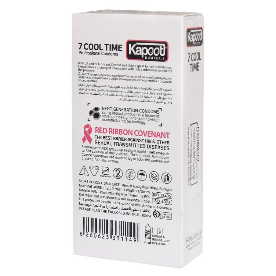 کاندوم کاپوت کول تایم یک ساعته 7 کاره سرد با حس خنکی، مواد تاخیری و طراحی ویژه، رابطه ای طولانی تر، تازه تر و پرهیجان تر را برای زوج ها ایجاد می کند.
