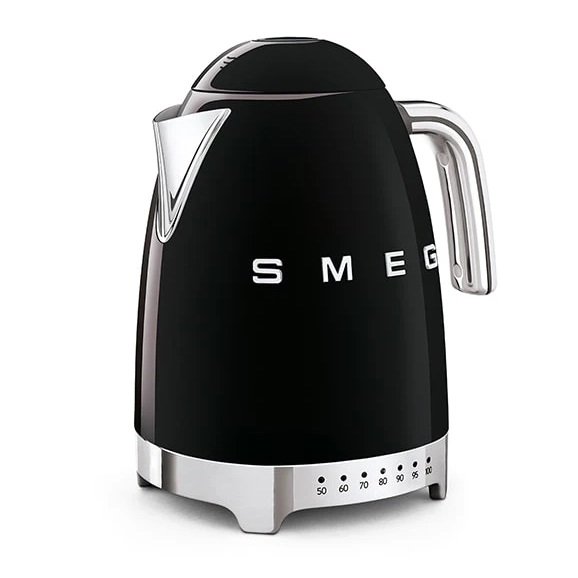 کتری برقی درجه دار اسمگ KLF04B با رنگ مشکی یکی از با کیفیت ترین کتری های برقی موجود در بازار بوده که توسط شرکت بزرگ و خوشنام اسمگ Smeg در رنگ های متنوع و زیبا تولید شده است و کاربران می توانند رنگ دلخواه خود را با توجه به چیدمان آشپزخانه و سلیقه خود انتخاب نمایند. این شرکت از بزرگترین و معتبرترین سازنده های لوازم خانگی کوچک و بزرگ بوده و تمام محصولات خود مانند کتری برقی درجه دار اسمگ KLF04B را با کیفیتی عالی و به صورت تضمین شده در اختیار مشتریان قرار داده است.