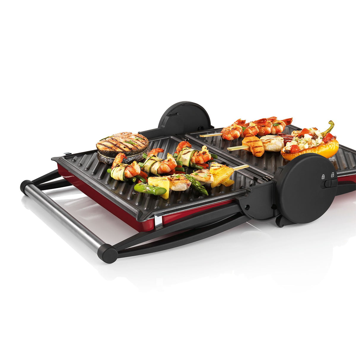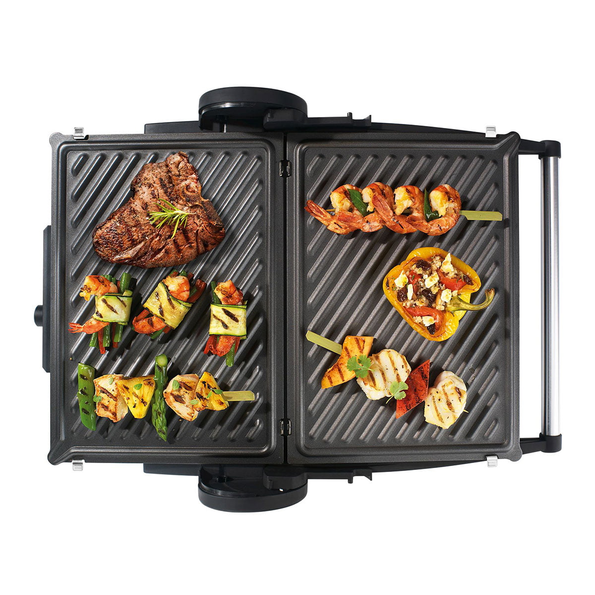 تنظیمات دماهای مختلف همراه با تنظیم یکپارچه خاموش / روشن شدن – قابلیت شستشوی قطعات در ماشین ظرفشویی – تمیز کردن آسان صفحه های گریل – لولای متحرک – چراغ پایلوت – صفحات با قابلیت چکه گیری روغن – صفحات جداشونده – صفحات مورب |