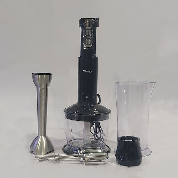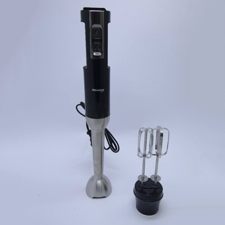 پایه بسیار بلند و باریک، از جنس استیل ضدزنگ – مناسب برای مواد داغ و سرد – دارای دکمه آزاد کننده و سهولت در سرهم بندی (مونتاژ) دستگاه – دستگیره باریک و مناسب برای جابجا نمودن دستگاه – LED با نور آبی – دارای کنترل کننده سرعت – قابلیت شستشوی لوازم جانبی در ماشین ظرفشویی – طول کابل برق 1.2 متر |