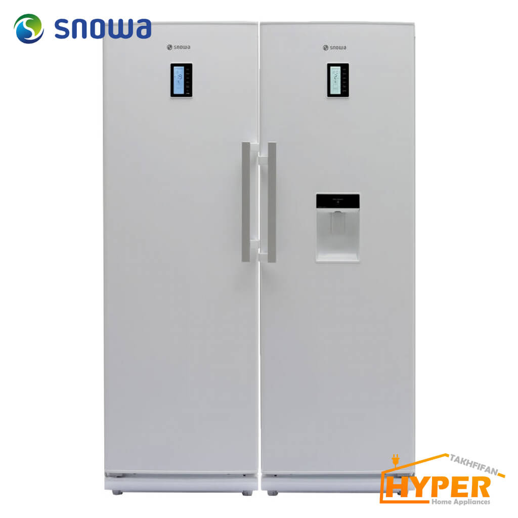یخچال فریزر دوقلو اسنوا S5-0190SW S6-0190SW به رنگ سفید براق، دارای دو یخچال مجزا (دو قلو)، طبقات شیشه ای و ضد شوک حرارتی، چرخ زیر دستگاه جهت جابجایی آسان، آبسرد کن با محفظه دو طبقه، نمایشگر، با ابعاد 69 × 119 × 180 (سانتی متر) و گنجایش خالص 638 لیتر (36 فوت) ظاهری منحصر به فرد و زیبا به محصول داده است.