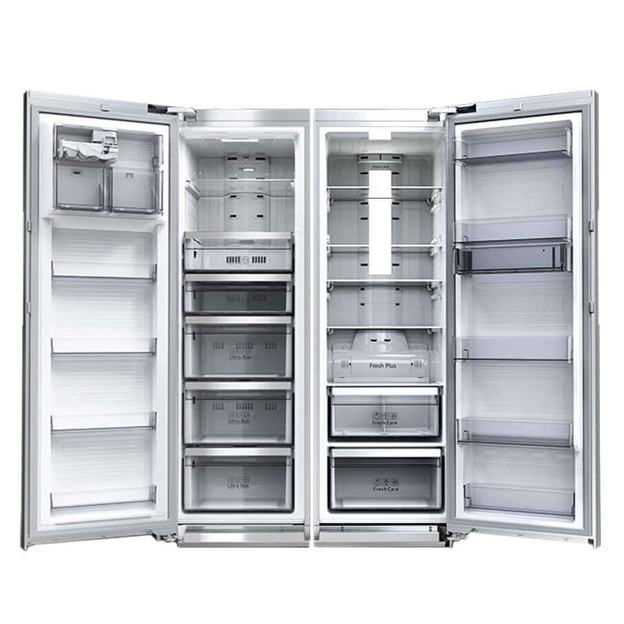 یخچال فریزر دوقلو دوو DLRF-2030SS، کد قدیم 2032SS، به سیستم ضدبرفک، نمایشگر LED، آبریز و یخساز اتومات، فیلتر آب، موتور HE، قفل کودک و انرژی +A مجهز شده است.