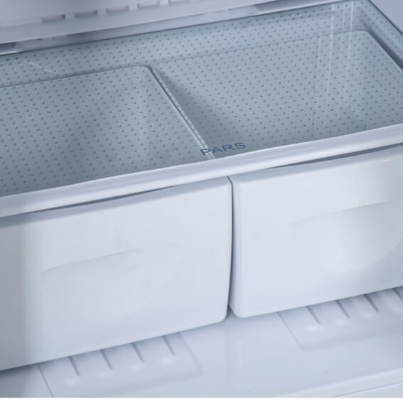 لاستیک دور درب ضد باکتری و فیلتر ضد قارچ یخچال فریزر دوقلو پارس مدل بوران از ورود هر گونه میکروب و باکتری به یخچال و فریزر جلوگیری و سلامت مواد غذایی را حفظ می کند. همچنین با وجود سیستم گردش هوا، هوای سرد در یک نقطه ساکن نمی ماند و با چرخش در همه طبقات یخچال، از پلاسیده و فاسد شدن مواد غذایی جلوگیری می کند. سیستم نوفراست (NoFrost) با ذوب برفک به صورت اتوماتیک نیز مانع از ایجاد برفک شده و تمامی نگرانی کاربر را از بابت به وجود آمدن برفک در یخچال از بین می برد.
