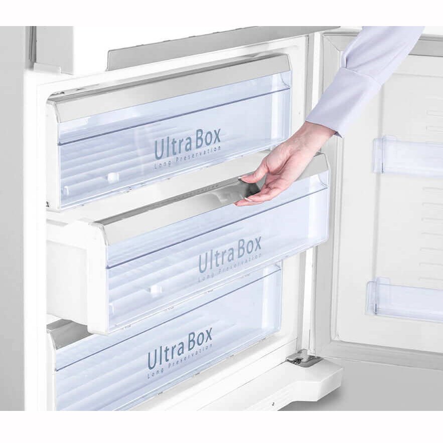 یخچال فریزر 28 فوت دوو مدل DB-2832GW دارای 3 طبقهی محفظه، 2 کشو و 5 طبقه درب در یخچال و 3 کشوی بزرگ و جادار در قسمت فریزر است و فضای بسیار مناسبی برای جای گیری انواع نوشیدنی، مواد غذایی و … به وجود می آورد. گفتنی است که فریزر محصول قابلیت تبدیل شدن به یخچال را دارد و شما می توانید بخش یخچال را گسترش دهید.