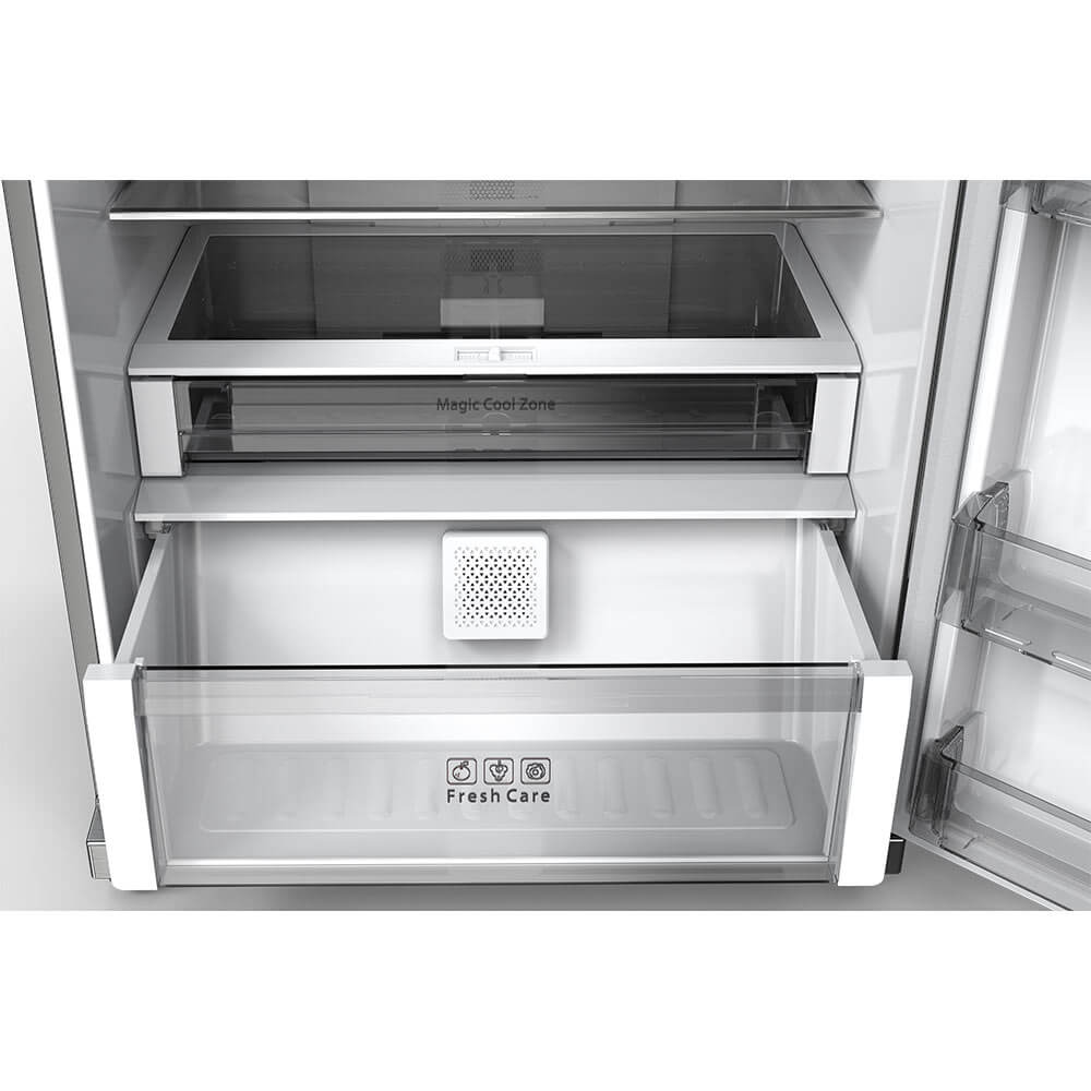 کد قدیم: 1027GW – یخچال 383 لیتری – فریزر 120 لیتری – نوار درزگیر آنتی باکتریال با قابلیت تعویض – سامانه خودکار بسته شدن درب ها – آبسردکن مخزنی – حالت ذخیره انرژی هوشمند (ECO) – فناوری کاهش مصرف انرژی – مجهز به فیلتر دو لایه نانو کربن – سامانه کنترل سرمایش الکترونیک Digital Cooling – سامانه سرمایش دوگانه – سامانه گردش هوای سه بعدی – سامانه مدیریت مصرف هنگام سفر – سیستم کنترل هوشمند – طبقات شیشه ای بدون قاب – محفظه میوه و سبزیجات – جهت باز شدن درب یخچال و فریزر به سمت راست – دارای 2 پاکت درب و 2 طبقه در فریزر – دارای 3 پاکت درب، 3 طبقه و 2 کشو در یخچال |