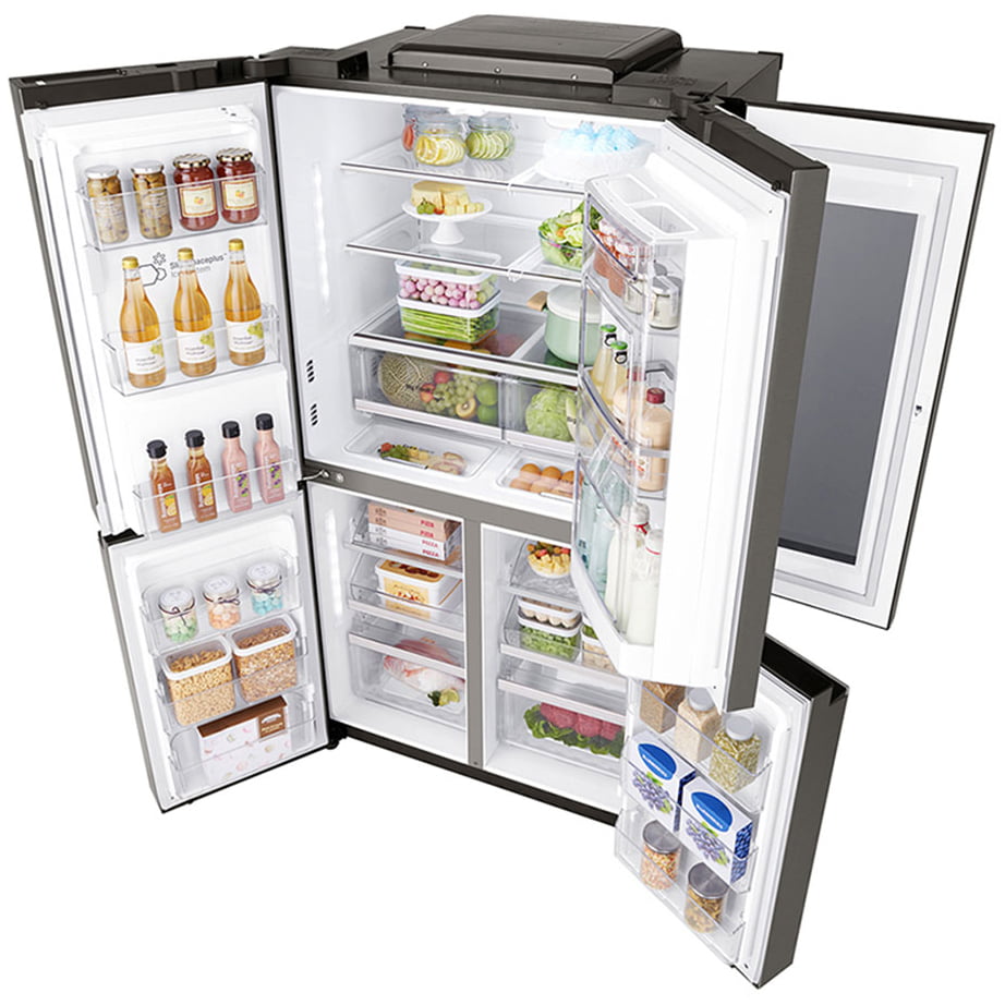فناوری ™SmartThinQ – فیلتر بهداشتی +Hygiene Fresh – قابلیت مشاهده مواد غذایی درون یخچال فقط با ضربه زدن به پنل شیشه ای براق درب – تکنولوژی فیلتر هوا – دارای صفحه نمایش Instaview – سیستم جریان هوای چند گانه – کشوی نگهدارنده میوه و سبزیجات – یخ ساز باریک داخل درب |