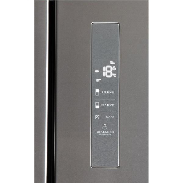 یخچال و فریزر ساید بای ساید چهار در – اخطار باز ماندن درب – یخساز نیمه اتوماتیک (منبع آب) – آبسردکن (با مخزن آب داخلی) – امکان باز شدن درب از هر دو سمت – سیستم گردش هوای چند گانه – دارای دو کشو مجزا جهت تازه نگه داشتن میوه و سبزیجات – سیستم خنک کنندگی سریع یخچال – سیستم اکونومی جهت استفاده در هنگام مسافرت – میزان صدا 45 دسی بل – سیستم کمترل هوشمند دیجیتال – محفظه نگهداری یخ