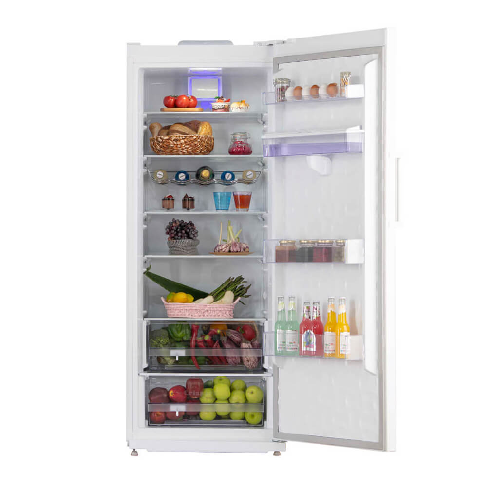 یخچال 16 فوت امرسان RH16D نوع تک درب بوده و بدنه ای به رنگ سفید دارد. تعداد 5 طبقه و 2 کشو در فضای داخلی و 4 طبقه در درب یخچال 16 فوت امرسان RH16D و همچنین جا لبنیاتی و جای بطری، فضای جادار و مناسبی را برای نظم دادن و جای دادن مواد غذایی شما به وجود آورده است.