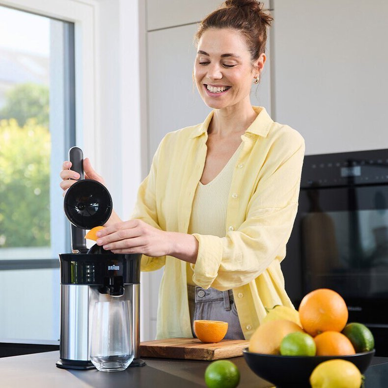 آب مرکبات گیری براون CJ7050 با توان 160 وات، عملکرد کم صدا، بدنه استیل، اهرم ارگونومیک و سیستم ضد چکه، گزینه ای عالی برای تهیه سریع و آسان آب مرکبات تازه است.
