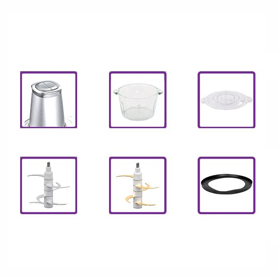 یک تیغه 6 پره استیل برای برشهای روزمره – یک تیغه 6 پره تیتانیوم برای خرد کردن سنگین تر و دوام بیشتر – دارای میکروسوییچ |