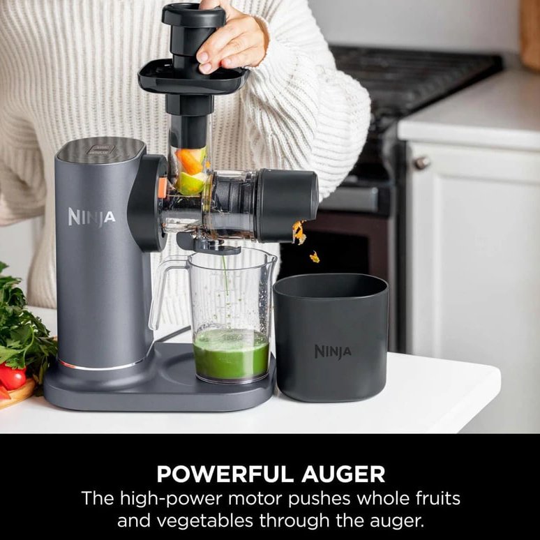 عصاره گیر نینجا JC151UK با تکنولوژی پرس سرد، توان 150 وات، فیلتر های قابل تعویض و عملکرد کم صدا، آب میوه ای تازه، غلیظ و مغذی تولید می کند.