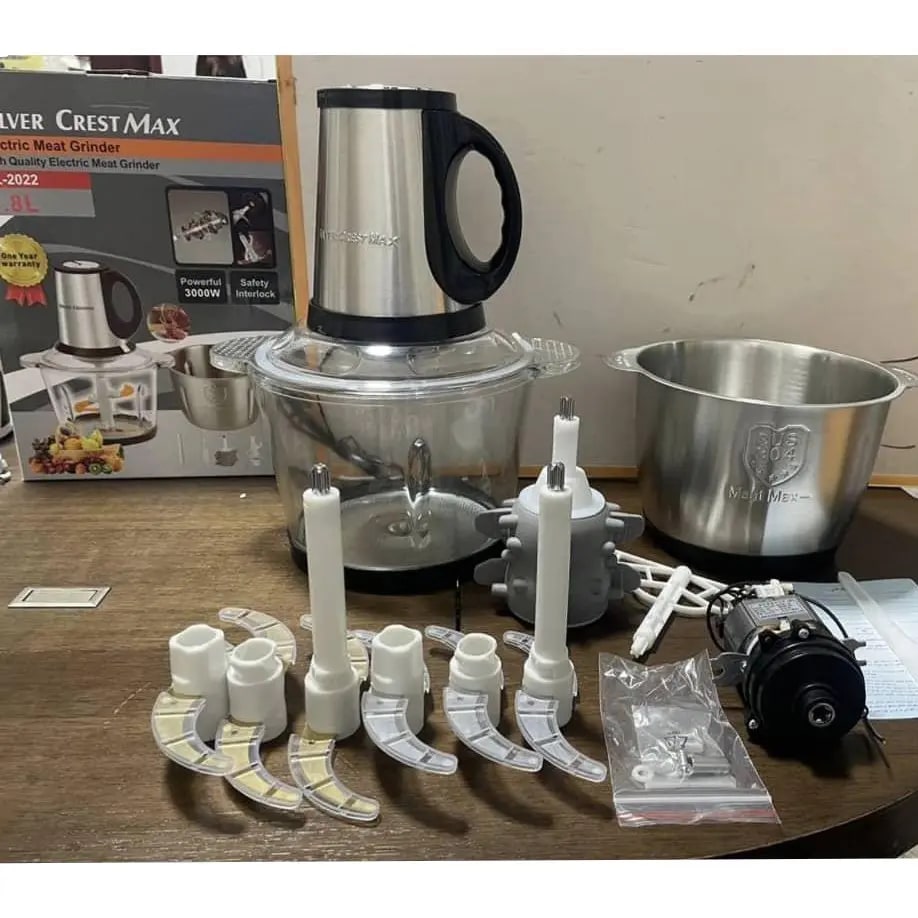 خردکن سیلور کرست SL-2022 با موتور 3000 وات، کاسه 3.8 لیتری، تیغه 6 پره استیل و صدای کم، انتخابی قدرتمند و کاربردی برای خرد کردن انواع مواد غذایی است.