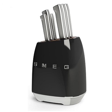 سرویس چاقو 7 پارچه اسمگ KBSF01BL مشکی از محصولات با کیفیت و زیبای برند اسمگ Smeg در دسته لوازم آشپزخانه است که با رنگ مشکی و طراحی منحصر به فرد رترو ایتالیایی خود جلوه خاصی به فضای آشپزخانه بخشیده و مورد استقبال همه قرار گرفته است. سرویس چاقو 7 پارچه اسمگ KBSF01BL مانند دیگر محصولات این برند اصالت و نوآوری را به نمایش گذاشته و با قیمتی اقتصادی نسبت به کیفیت بالای خود، در اختیار خریداران قرار گرفته است.